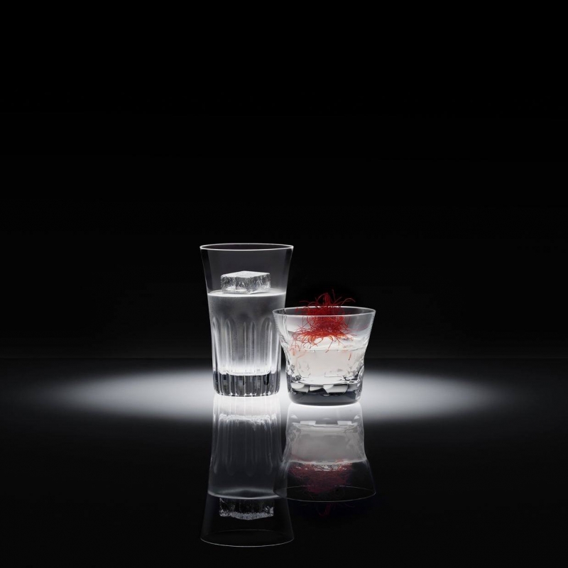 HARMONIE glass with OCTOGONE tray. Baccarat, harmonising color, craft, and cocktail culture.