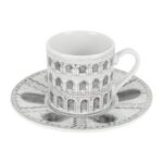 UMBRELLA STAND ARCHITETTURA. WHEREVER YOU MAY FIND SHELTER AFTER A WALK UNDER THE RAIN, MAKE SURE YOUR UMBRELLA STANDS IN FORNASETTI UMBRELLA STAND. ITS EXCEPTIONALLY CRAFTED SHAPE AND CAREFULLY SELECTED DESIGNS WILL TURN A RAINY DAY INTO A PRECIOUS ARTISTIC EXPERIENCE. DETAILS- COLOUR: BLACK AND WHITE, HEIGHT: 57CM, DIAMETER; 26CM
