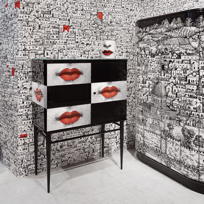 FORNASETTI BEGINS 2020 WITH NEW POP-INSPIRED CREATIONS.THE RED LIPS FEATURED IN THE DECORATIONS ADD A TOUCH OF IRREVERENT IRONY TO FORNASETTI’ S HYPNOTIC GEOMETRY.