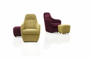 MERWYN lounge chair by SEBASTIAN HERKNER. The shell that SEBASTIAN HERKNER gives this quality core espouses a similar blend of traditional and contemporary strengths: the shape of the chair and sofa stirs up associations with classic armchairs and canapés. The precise upholstery is positioned above delicate, almost fragile-looking legs. By contrast, the piece’s modern, pared-down shape and thoroughly stable structure – along with its pleasingly coherent proportions – is a product of the complexity of knowledge and skill that goes into innovative design ideas.