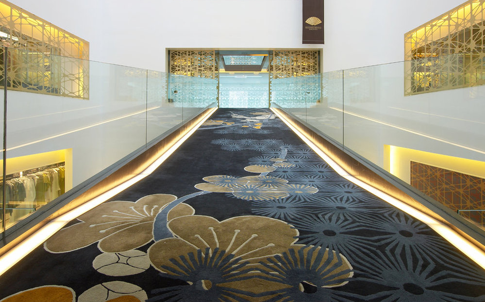 Scenematic Collection: Skyfall III and Midnight Escape by André Fu for Tai Ping. This signature collection pays poetic homage to the quintessential international urban landscape, with its modern architecture and shadows, and the subtle reflective qualities of water expressed through distinctive cinematographic carpet designs.
